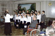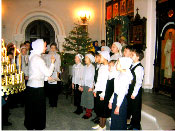 Образовалось две группы: младшая (7-10 лет) и старшая(11-16 лет). Вскоре, в том же году - на Рождественском, а затем на Пасхальном утреннике - новый хор был услышан. А со следующего учебного года дети регулярно выезжают с сестрами милосердия в Республиканский Ортопедический госпиталь, внося свет христианских праздников в больничные палаты. С этого же времени хор участвует в богослужениях второго дня после Рождества Христова и Святой Пасхи. В 2000 г. в воскресной школе был организован специальный хоровой класс, где ребята углубленно изучают церковное пение и чтение.