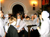 Каждый год хоровой класс пополняется желающими. Сегодня в младшей группе 20 детей, а в старшей - 25. Занятия ведут А.И.Суханова, преподаватель минского Педагогического Университета им. М.Танка, и выпускница Минского Духовного училища Т.А.Середкина. Кроме того, в учебную программу класса входят уроки Закона Божиего, которые ведет один из старейших преподавателей Воскресной школы Валентина Павлова. Чем отличаются дети-хористы? Прежде всего, они послушны. Не просто послушны педагогам. Они честно и добросовестно исполняют принятые на себя христианские обязанности, то есть - несут послушание пред Богом. Поэтому с ними легко работать. И поэтому они никогда не подводят.