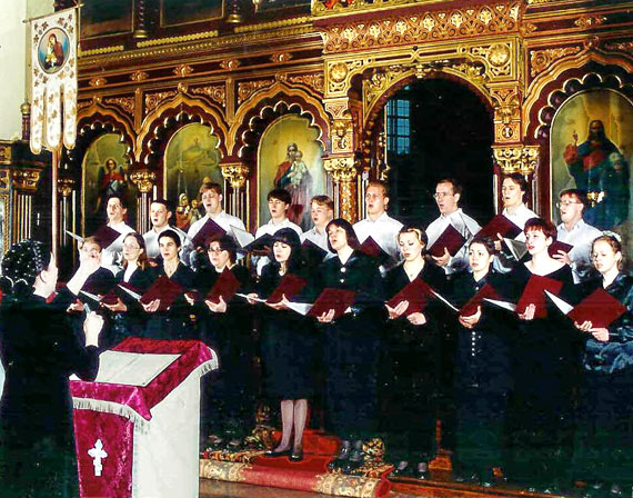 Видите ли, знаменный роспев нельзя "включить в репертуар", как нельзя включить в репертуар, скажем, первую тему второй части Пятой симфонии Бетховена: или всю симфонию целиком - или ничего. Другой пример. Посмотрите на своды нашего Свято-Петро-Павловского собора: можно ли назвать эти бережно сохраняемые под побелкой фрагменты старинных фресок росписью? Нет, это, скорее, воспоминание о былом великолепии, некогда охватывавшем весь храм. Так и с роспевом: любая попытка "исполнить" его в концерте или даже во время богослужения, но фрагментарно, вне связи с другими его частями - моментально превращает его в рядовое музыкальное произведение, очеловечивает его и лишает богозданности. А ведь Господь даровал людям роспев как нечто целомудренное! Мы же умудрились не только святотатственно разодрать его на части, но при этом ещё и поставить себе в заслугу сохранение этих искалеченных членов, их реставрацию, развитие и сочетание с современными новациями. Вот послушайте, что про нас писал автор "Валаамской беседы" ещё в первой половине 16-го века: "Многие найдутся среди них такие, которые станут на клиросах, по их разумению, хорошими певцами, сами начнут по-своему переделывать напевы и каждый примется хвалить свое пение, но ни об одном из их напевов не было с неба свидетельства, да и не будет!"