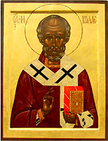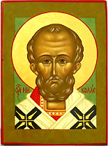 Св. Николай. Доска, яичная темпера, позолота, 32 х 24. Находится в церкви Покрова Пресвятой Богородицы,