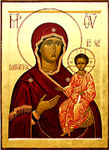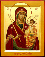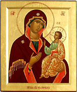 Икона Божией Матери "Одигитрия". Доска, яичная темпера, позолота, 72,5 х 43. Находится в Свято-Евфросиниевской церкви прихода.