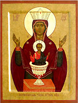 Икона Божией Матери "Неупиваемая чаша". Доска, яичная темпера, позолота, 32,5 х 25. Находится в Свято-Евфросиниевской церкви прихода.