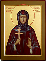 Св. Евфросиния Полоцкая. Доска, яичная темпера, позолота, 32,5 х 24. Находится в Святто-Евфросиниевской церкви прихода.