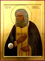 Прп. Серафим Саровский. Доска, яичная темпера, позолота, 68,5 х 52. Находится в церкви Покрова Пресвятой Богородицы, г. Минск.