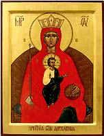 Икона Божией Матери "Песчанская". Доска, яичная темпера, позолота, 35 х 30,5. Находится в Свято-Евфросиниевской церкви прихода.