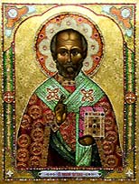 Николай Чудотворец. Доска, темпера. Оклад - шитье,