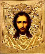 Спас Нерукотворный. Доска, темпера, металл, чеканка, стразы, Киот. Иконописная мастерская Гомельской епархии, г. Гомель.