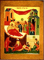 Рождество Богоматери. Доска, темпера, позолота, 40 х 30. Иконописец Т.В.Самкова. Минская епархия, г. Минск.