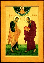 Свв. апп. Петр и Павел. Доска, темпера, позолота, 40 х 28,7. Иконописец инокиня Анна. Полоцкая епархия, г. Полоцк.