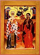 Свв. Киприан и Иустиния. Доска, темпера, позолота, 40 х 30. Иконописец Самкова Т.В. Минская епархия, г. Минск.