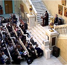 Успенского, который на рубеже XX века, глядя на икону, с которой сняли иногда неумелые и непрофессиональные поновления и записи, сказал: "Начинается проникновение в тот духовный смысл древней иконы... она воспринимается уже не как только художественная или культурная ценность, но как художественное откровение духовного опыта, т.е. выражаясь словами князя Трубецкого, умозрения в красках". В этом смысле, мне думается, что выставка современной иконы говорит прежде всего о том, что проникнуть сегодня, вникнуть в суть догмата иконопочитания, это значит осмыслить и саму икону не только как предмет молитвы и украшения храма, это значит осмыслить её созвучие современному человеку, свидетельство духовного опыта, передаваемого из глубины Православия.