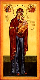 Богоматерь Страстная. Доска, темпера, позолота, 122,5 х 62. Иконописец В.Л.Довнар. Минская епархия, г. Минск.
