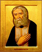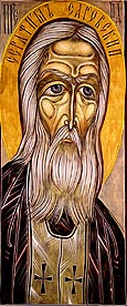 Св. Серафим Саровский. Доска, темпера, позолота, 97 х 44,5. Иконописец А.Н.Кресс. Минская епархия,
