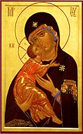 Икона Божией Матери "Владимирская". Доска, темпера, позолота, 101,5 х 65. Иконописец А.В.Косиков. Минская епархия, г. Минск.