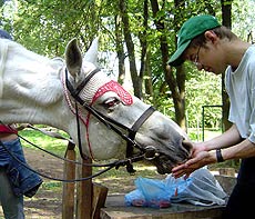 иппотерапию (от греческого "иппо" - лошадь) - лечение с помощью лошади пациентов с тяжелыми нарушениями;