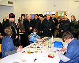 сотрудники мастерских для людей с ограничениями, прихожане. Шёл разговор о духовной музыке, о
