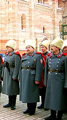 Нельзя казаку без духовника Совместное с милиционерами патрулирование обширного хозяйства расположенного в пойме реки Свислочь минского зоопарка и создание здесь же аналога станицы – это лишь последние из инициатив белорусских казаков. Об этом сообщает газета «Минский курьер». А в прошлом году они приняли активное участие в акции «Семь храмов в семи городах за один день», посвященной 1020-летию крещения Руси. Тогда в белорусской столице была воздвигнута «обыденная» церковь в честь иконы Божьей Матери Донской. Казаки надеются, что некогда рядом с небольшим деревянным вырастет большой красивый войсковой храм. Несколько лет назад РОО «Белорусское казачество заключило бессрочный договор в Белорусской Православной Церковью. В 2002 году Митрополит Минский и Слуцкий Филарет Патриарший Экзарх всея Беларуси благословил настоятеля минского прихода иконы Божьей Матери «Всех скорбящих Радость» протоиерея Игоря Коростелева нести послушание духовника РОО «Белорусское казачество». - Отец Игорь очень много делает для воцерковления белорусского казачества, рассказывает верховный атаман Николай Улахович. Одна из его обязанностей как нашего духовника – ведение постоянно действующего семинара «Православие, возрождение казачества и современность». Все казачьи подразделения Беларуси имеют своих духовников. Конечно же, мы с благодарностью принимаем духовное покровительство нашей церкви, стараемся по мере сил подсоблять ей. Помогаем священнослужителям поддерживать порядок на территории, обеспечиваем безопасность во время проведения больших богослужений и визитов иерархов церкви. / sobor.by/ Виктор Мельниченко