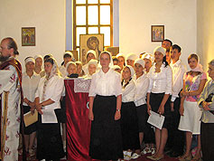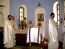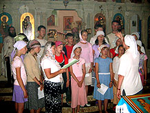 По уже устоявшейся традиции перед прихожанами выступил хор. Запали в душу напутственные слова Владыки: "Пусть приезд ваш к нам будет благословенным. Как пчелы собирают нектар с цветов, так и вы соберите на нашей земле все самое лучшее и нарисуйте красивую картину о ней". Отец Варнава много рассказывал нам о Владыке, ставшем первым епископом, который вернулся в занятую мусульманами местность. Ему пришлось немало потрудиться, восстанавливая епархию. "Это очень скромный человек, понимающий и любящий отец, -- с уважением говорил о нем иеродиакон Варнава. -- Принимает деятельное участвует в строительстве монастырей. Является членом Синода, председателем Великого церковного суда, министром церковного образования. Удивляюсь, как ему хватает сил на все это"