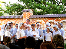 В Боснии остановились в монастыре святой мученицы Марины (день памяти - 30 июля), иначе "Клисина". Родная обитель отца Варнавы располагается в 14 километрах от города Приедора на северо-западе Боснии. Основал ее Преосвященнейший Хризостом, епископ Бихачско-Петроваческий. Из этой обители мы совершили очень много поездок по всей Боснии. Можно сказать, мы вдоль и поперек объездили всю страну. В наш монастырь мы возвращались поздно вечером из неблизких и довольно трудных поездок по святым местам края. Естественно, приезд юных паломников из Беларуси несколько нарушил размеренную жизнь монастыря. Однако, добросердечный настоятель отец Василий и кроткий иеромонах Вениамин живущие тут, покорили всех нас своей добротой, любовью и кротостью. Как и планировалось, наш хор вместе с Владыкой участвовал в праздничном богослужении в день святых Апостолов Петра и Павла в городе Сански Мост. Кстати, в этот день исполнилось пятнадцать лет его архиерейского служения. Всей группе запомнилась трапеза, которую разделили после Литургии с сербскими братьями и сестрами.