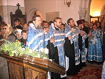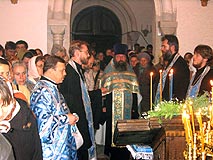 прихода. Было много желающих причаститься на праздничной литургии, поэтому исповедь началась во вренмя Всенощного бдения.