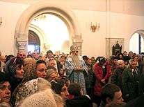По окончании Божественной литургии владыка митрополит наградил диаконов Ярослава Близнюка, Димитрия Романовича и Дионисия Коростелёва - грамотами Патриаршего Экзарха. Владыка обратился к духовенству и прихожанам с просьбой усилить свои труды и молитвы, дабы в следующем году войти под своды Скорбященского собора.
