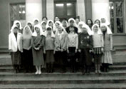 С того же времени началось посещение инвалидов на дому. Наши школьницы попросили навестить их бывшую учительницу, прикованную к постели, Калач Людмилу Петровну. Людмила Петровна поверила сестрам, что недуг может быть ей во спасение, затем обрела веру церковную. И… -- «по вере да будет вам» -- после первого же причастия Святых Тайн встала. Пошла с палочкой. А вскоре настолько воспрянула духом, что стала петь, аккомпанируя себе на аккордеоне, и выступала на праздниках.
