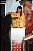 | Миром Господу помолимся | Так диакон Дмитрий Романович поначалу окунулся в рыночную стихию. Засосало, как в трясину. Начались уголовные «разборки». Грозили убить. Обращение в милицию, конечно, ничего не дало. Кинулся в Свято-Духов собор. И сам удивился, что молился он… о своих врагах, желая им всех благ и вразумления. Был тогда как раз праздник Преображения Господня. Тут же столкнулся с отцом Игорем и приехал в палатку, где так и остался. Жил далеко. Но не замечал ни времени, ни транспортных неудобств. «Летел, как стрела». Работать пошел на завод слесарем, а в церкви-палатке организовал молодежное братство, обретая первый опыт на этой еще не проторенной дороге.